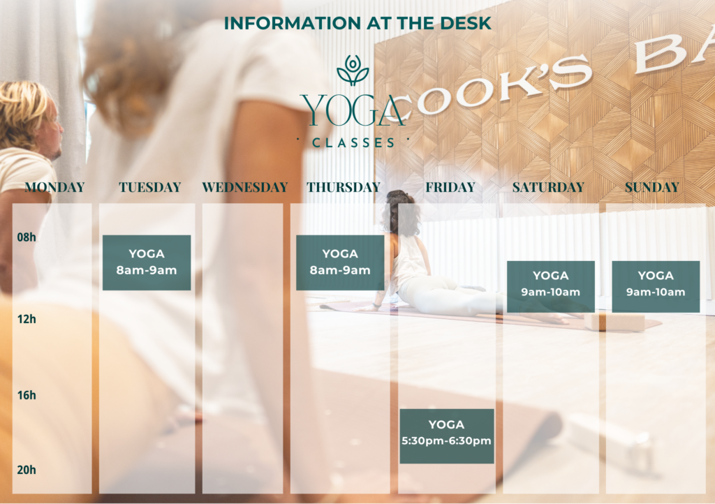 Classes open to all, residents or non-residents of Cook’s Bay Hotel.