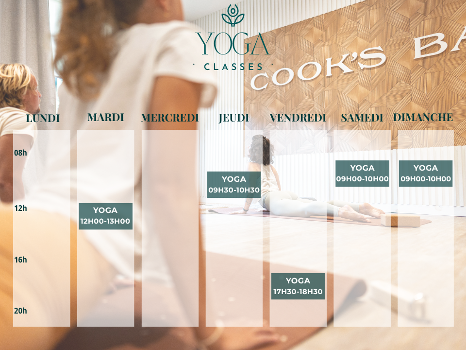 Ces rencontres uniques combinent une ou plusieurs séances de yoga revitalisantes, un brunch sain et savoureux au restaurant Le Cook’s, et une initiation à une seconde discipline bien-être, offrant une expérience complète dans un cadre exceptionnel.